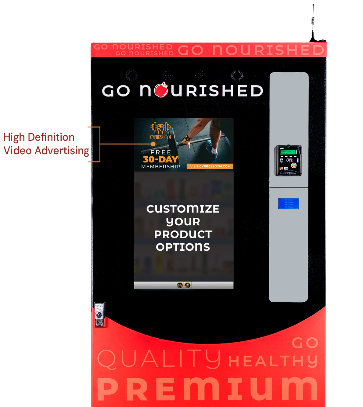 Our smart vending machines feature high-definition displays that can also host digital ads. This creates a new opportunity for local businesses to promote their services affordably and effectively.